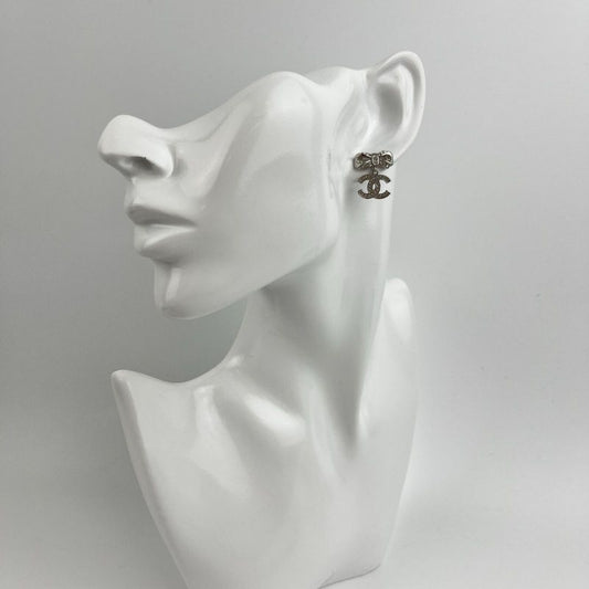 Chanel Coco Mark Accessories Ribbon Earrings Silver B18P Vintage Ladies