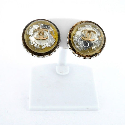 Chanel Earrings Coco Mark Round Shape Circle GP Plating Plastic Rhinestone Gold