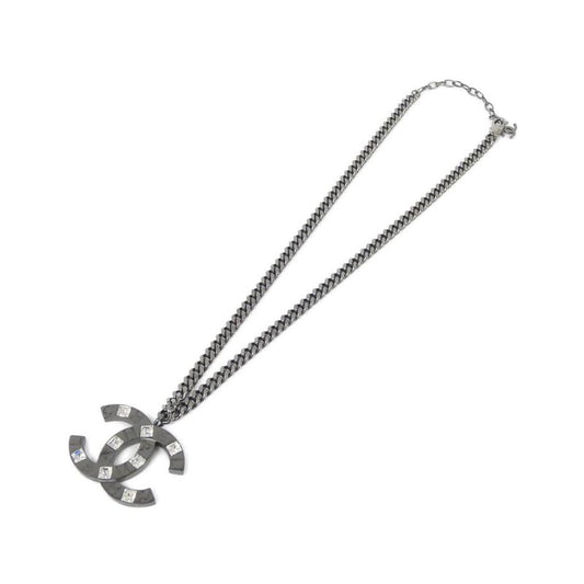 Chanel Coco Mark Rhinestone Necklace Silver Plated Silver Ladies