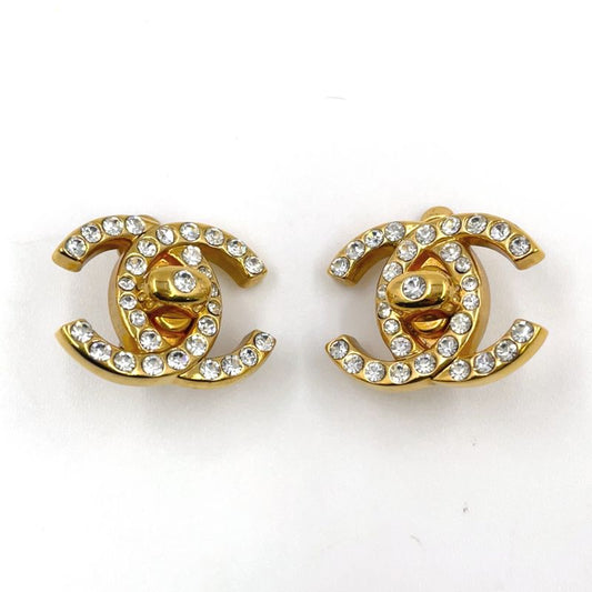 Chanel Coco Mark Turnlock GP X Rhinestone Clear X Gold Earrings