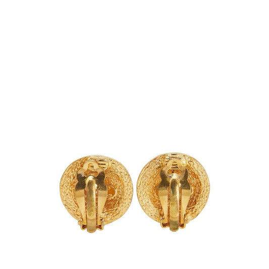 Chanel Earrings Vintage 24K CC Coco Mark Round Gold Silver Plated Ladies