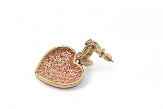 Chanel Earrings Accessories Chanel CC Mark Heart Motif Rhinestone Gold