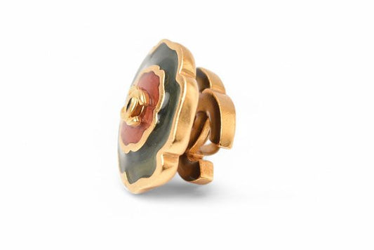 Chanel Earrings Vintage Chanel Flower Motif CC Mark Antique Gold