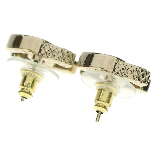 Chanel Coco Rhinestone Logo Earrings Chien Pan Gold GP