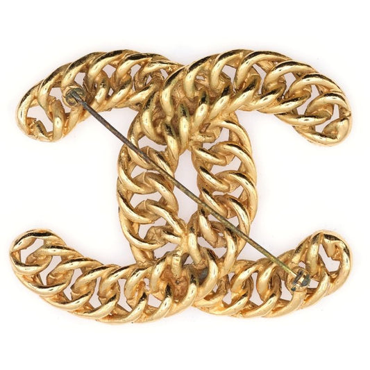 Chanel Coco Mark Chain Brooch Pin Badge GP Gold