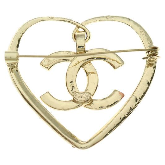 Chanel Coco Mark & Heart Gold Plated Brooch With Rhinestones Gold