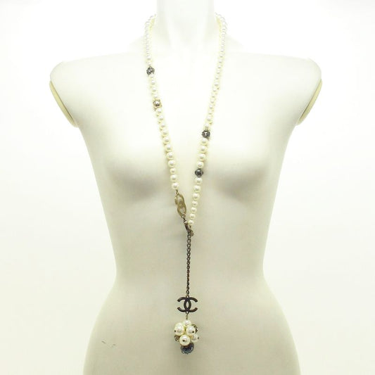 Chanel Necklace - Ivory X Silver Coco Mark Pearl Rhinestone