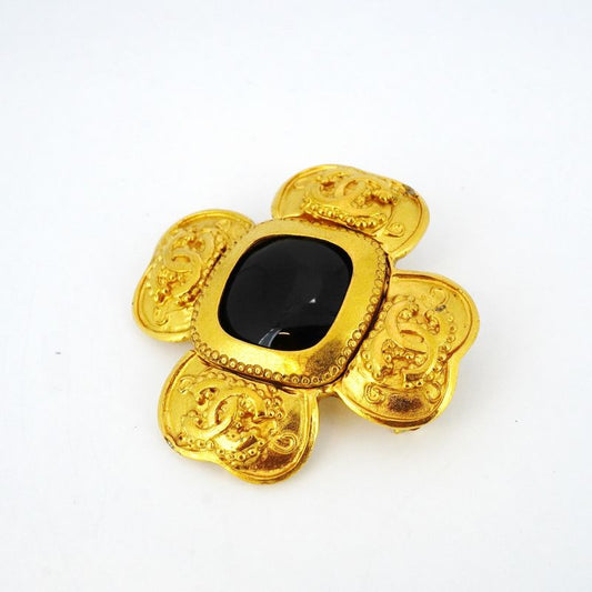 Chanel Brooch Vintage Coco Mark GP Plated Gold Black Cles Dies