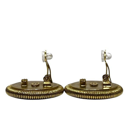 Chanel Earring Vintage Coco Mark Round Shape Circle GP Plated Gold Black Cles