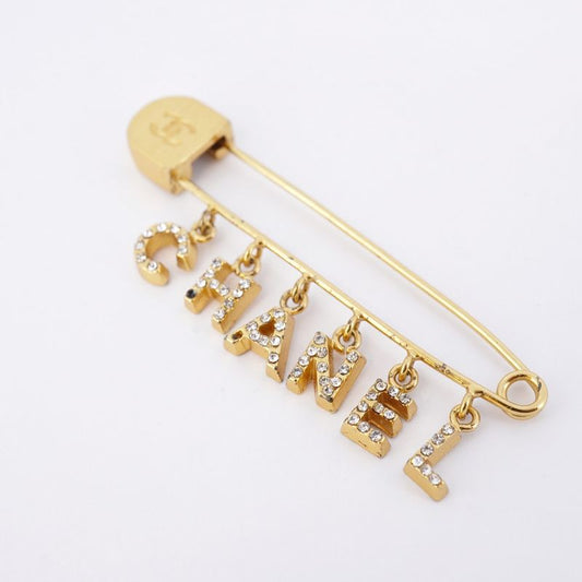 Chanel Brooch Here Mark Chanel Logo GP Plated Rhinestone Gold Ladies