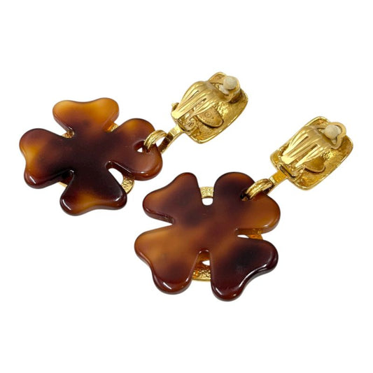 Chanel Earring Set 95p Coco Mark Clover Earring Gold Brown Ladies Vintage
