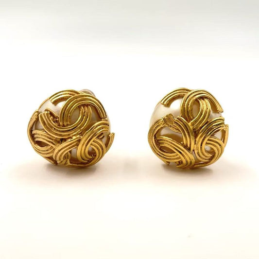 Chanel Matelasse Fake Pearl Metal X Fake Pearl Off White X Gold Earring