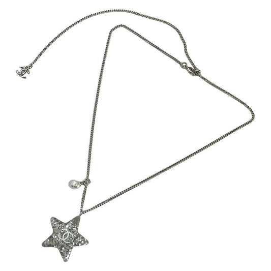 Chanel Necklace Here Mark Comet Silver X White X Clear Star Pearl