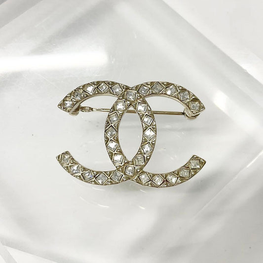 Chanel Brooch Coco Mark Rhinestone Gold