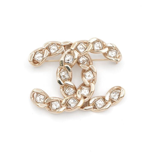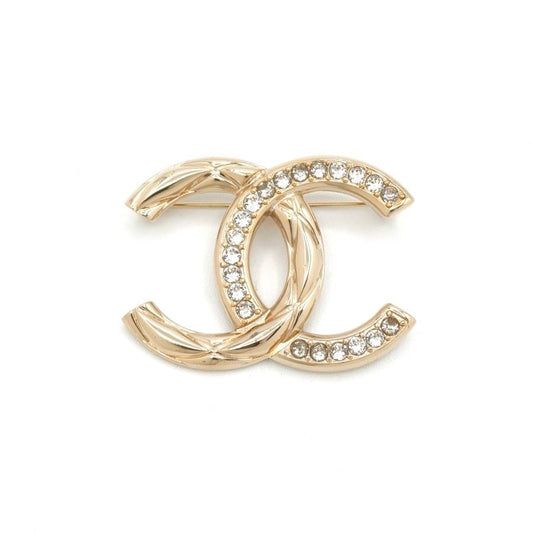 Chanel Brooch Corsage Gold Here Mark Rhinestone