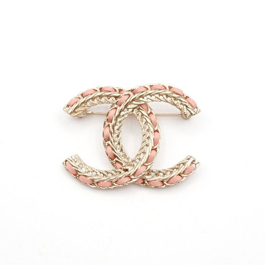 Chanel Brooch Corsage Gold Pink Here Mark Chain
