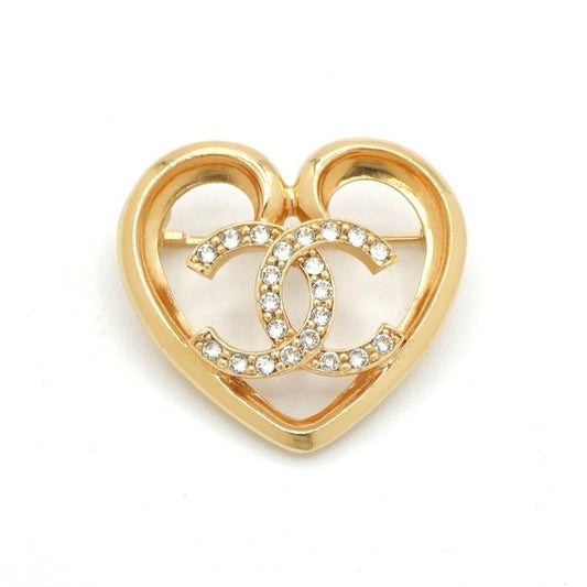 Chanel Brooch Corsage Gold Heart Here Mark Rhinestone
