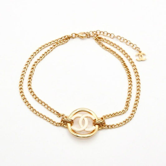 Chanel Necklace Pendant Choker Gold White Here Mark Circle