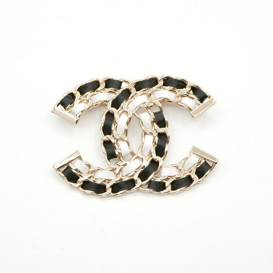 Chanel Brooch Corsage Gold Black White Here Mark