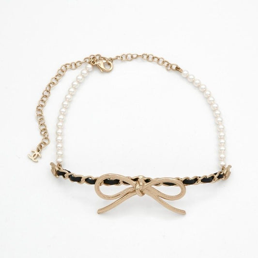 Chanel Necklace Pendant Choker Gold Coco Mark Ribbon Chain Lambskin