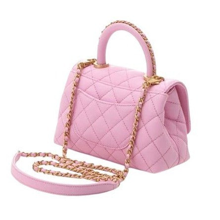 CHANEL Caviar Quilted Mini Coco Chain Handle Flap Bag Pink