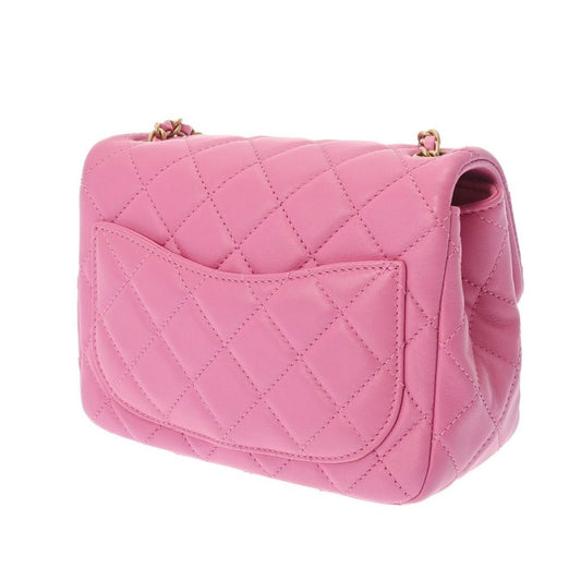 CHANEL Lambskin Quilted Mini Pearl Crush Flap Bag Chain Purse Pink