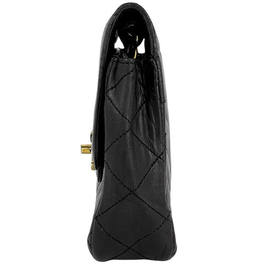 Chanel No 3 Black Lambskin Ghardware Mini Matelasse 17 Chain Shoulder Bag Black