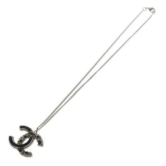 Chanel Coco Mark Necklace Black and Silver Pendant B12a