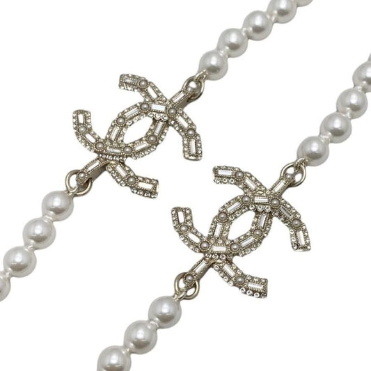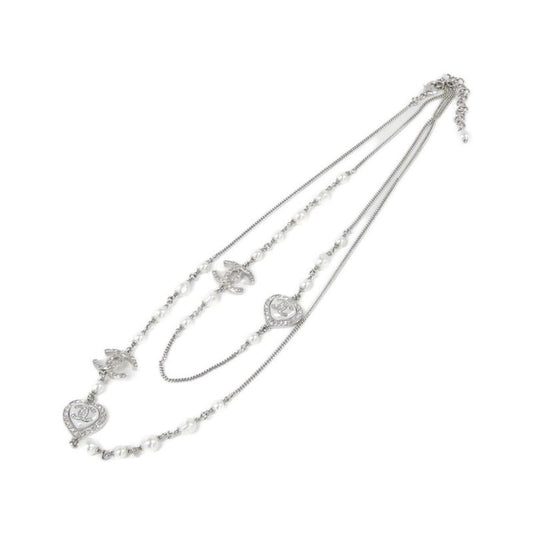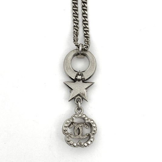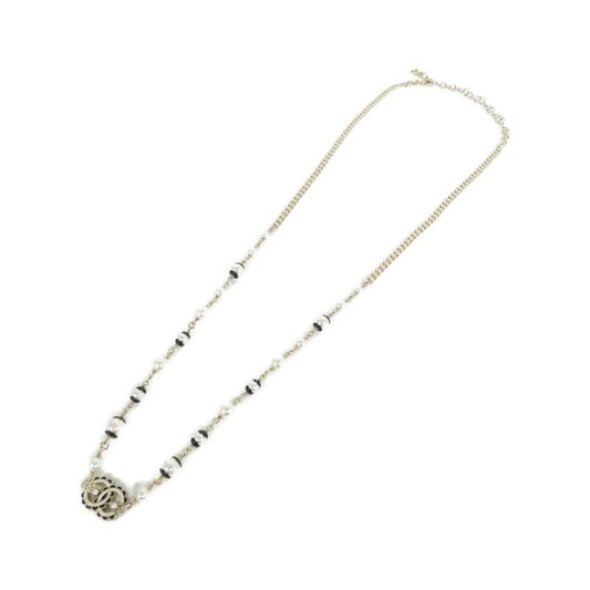 Chanel Coco Mark Faux Pearl Necklace Flower Star Rhinestone Necklace Silver
