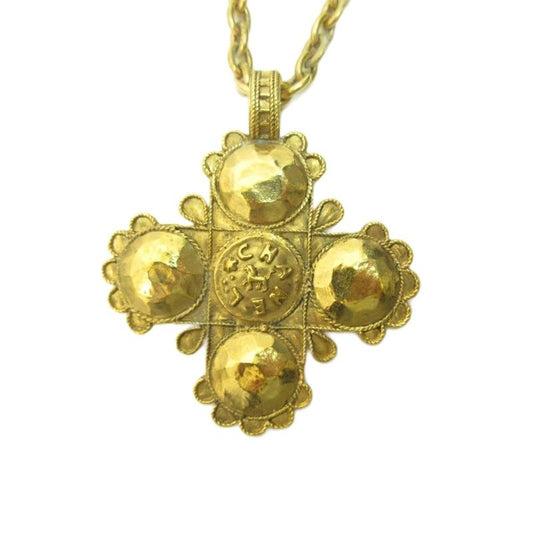 Chanel Vintage Double Necklace Cross CC Logo Gold Plated Gold Color Aa