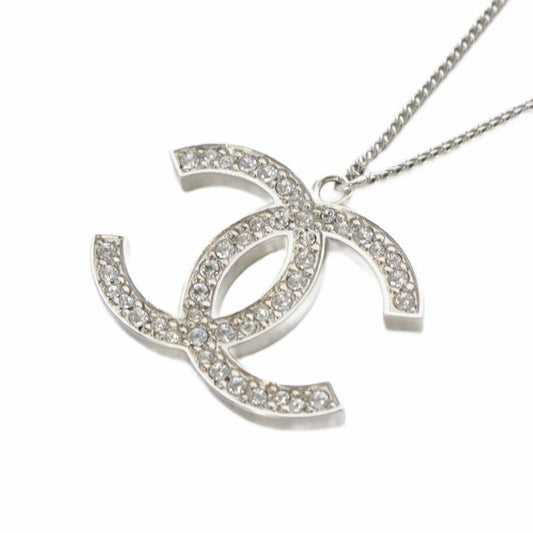 Chanel 12a Coco Mark Necklace Rhinestone Pendant Silver Color