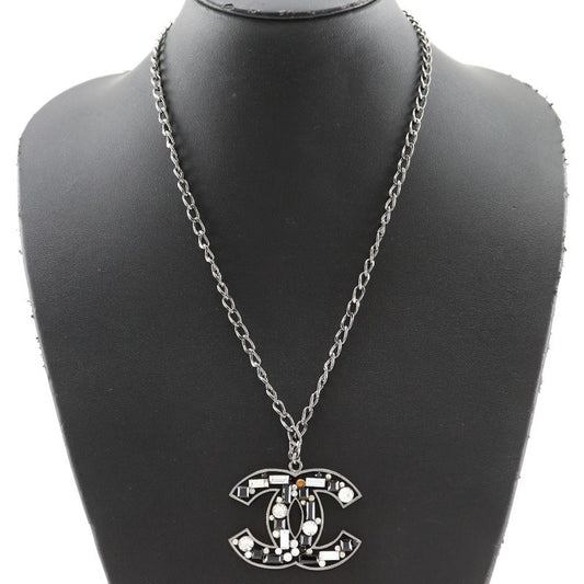 Chanel Coco Mark Metal And Rhinestone Silver/black 03A Ladies 34.1g Necklace