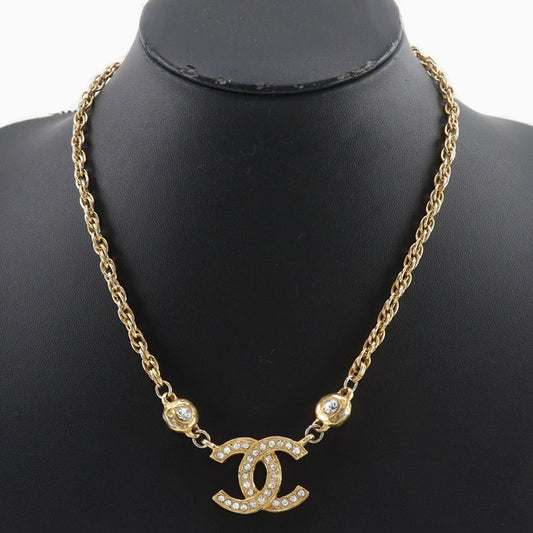 Chanel Coco Mark Vintage Gold Plated And Rhinestone Ladies 29.5g Necklace
