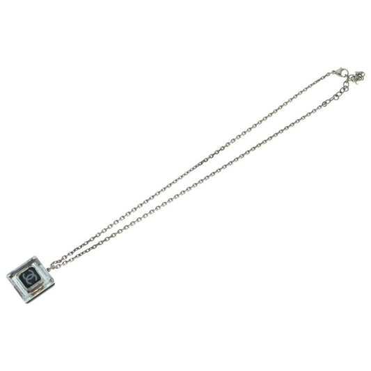 Chanel Square Design Coco Mark Necklace Pendant Chain Silver And Black