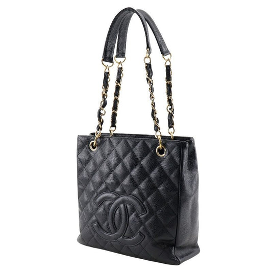 Chanel CC Caviar Quilted Petite Shopping Tote PST Chain Black Leather Purse