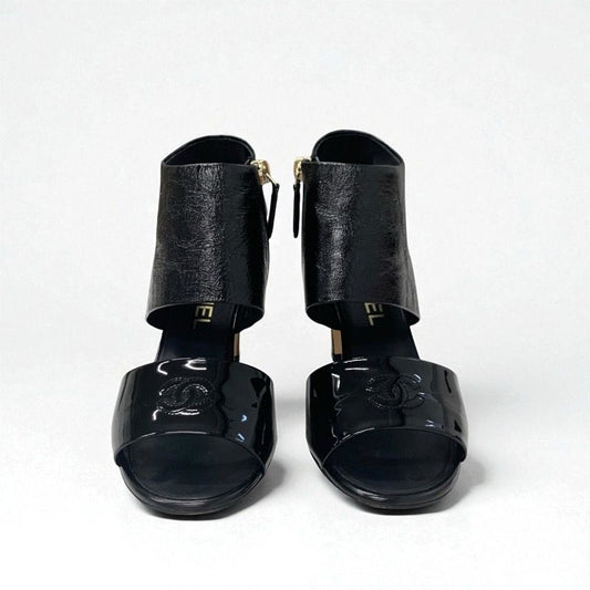 Chanel Sandals Shoes Leather Patent Black Here Mark Wrinkle Processing