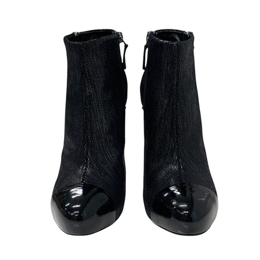 Chanel Boots Short Boots Shoes Leather Black Here Mark Metallic
