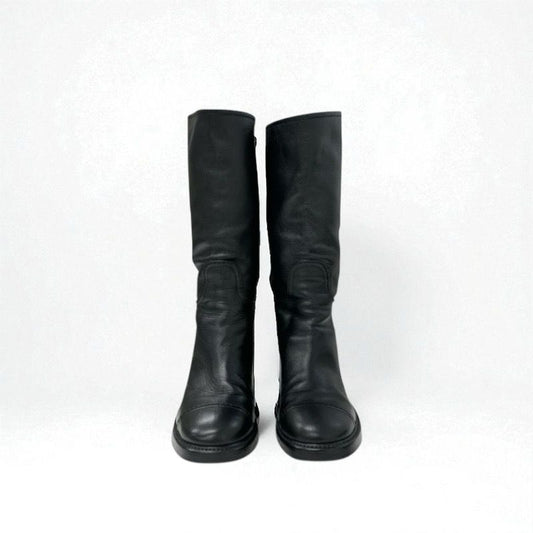 Chanel Boots Long Boots Shoes Calfskin Black Here Mark Middle Boots