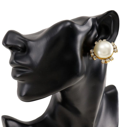 Chanel Vintage Gold Plated X Faux Pearl X Rhinestone Ladies 25.6g Earring