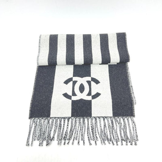 Chanel Scarf Coco Mark Bicolor Wool Black