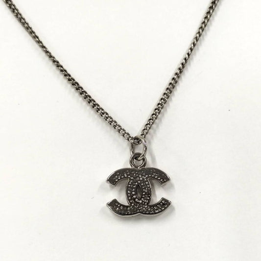 Chanel Necklace Coco Rhinestone Silver Plated 09V