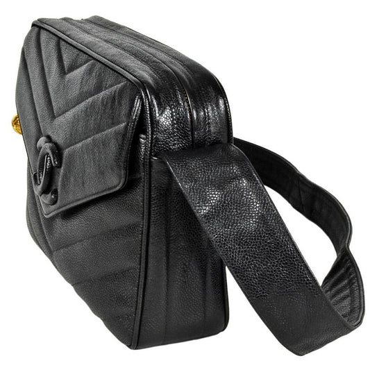 Chanel Coco Mark Chevron V-stitch Shoulder Bag In Black Caviar Skin