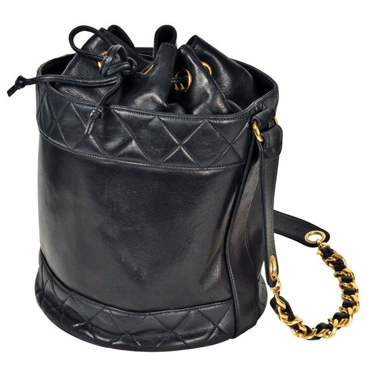 Chanel Matelasse Drawstring Shape Chain Shoulder Bag Lambskin Black Gold