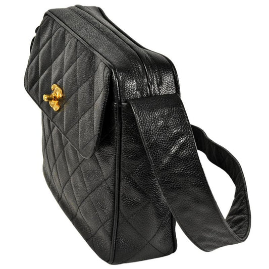 Chanel Coco Mark Matelasse Chain Shoulder Bag Caviar Skin Black Gold Hardware