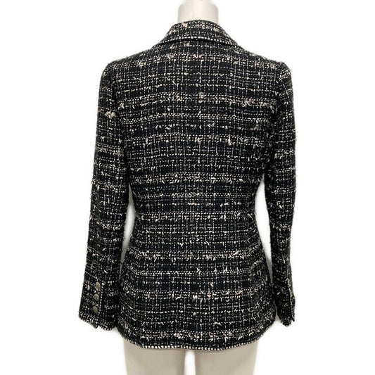Chanel Jacket Size 38 M Women's P24952 Black And Ivory Lame/tweed/emblem Cotton
