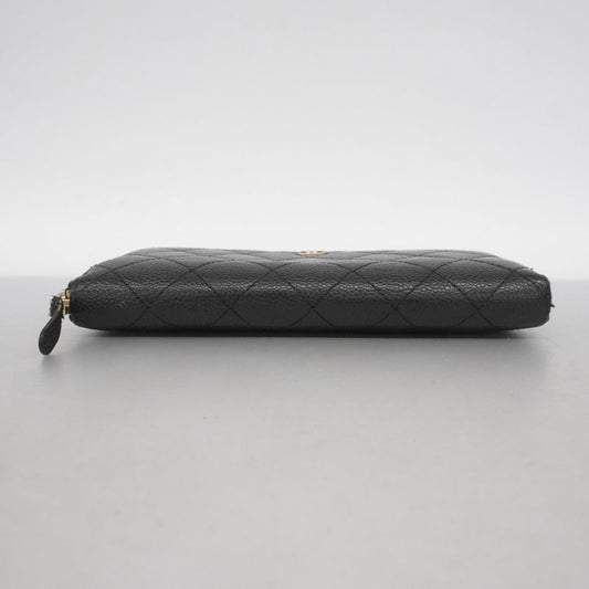 Chanel Long Wallet Matelasse Caviar Skin Black Gold Hardware Women