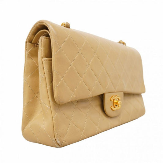 Chanel Shoulder Bag Matelasse Lambskin Beige Gold Hardware Women