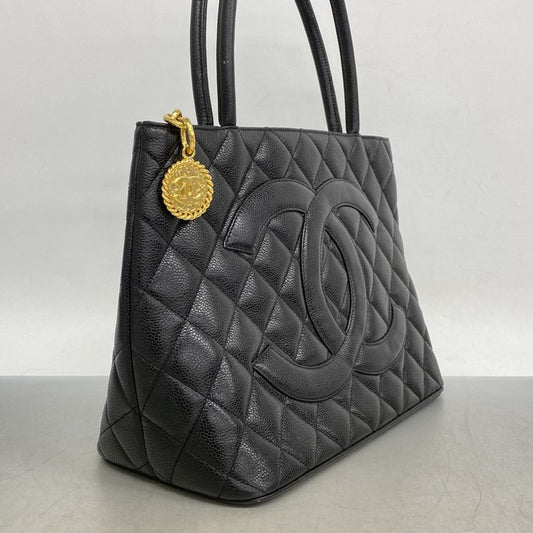 Chanel Tote Bag Revival Tote Caviar Skin Black Gold Hardware Women's