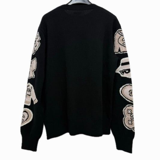 Chanel Sweater Street Coco Mark Ribbon Heart P80299 Cashmere Black