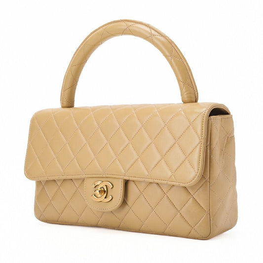Chanel Handbag Matelasse Coco Top Handle Flap Bag Lambskin Beige Gold